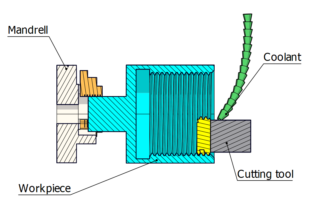 • Snuing:Denne metoden bruker en dreiebenk for å dreie arbeidsstykker i høy hastighet og et verktøy med en spesiell form for å fjerne lag med material fra arbeidsstykket. Arbeidsstykkets form er vanligvis revolusjonerende. Hvis arbeidsstykket er langt nok, brukes en ekstra del for å støtte vekten av arbeidsstykket.